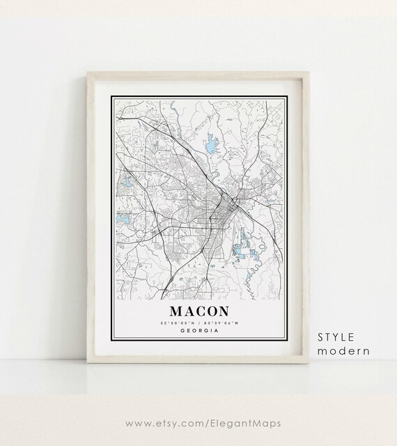 Macon Georgia Map, Macon GA Map, Macon City Map, Macon Print